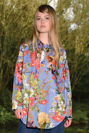 Everyone loves a classic shirt, and we're bringing you the 'Cross on Over' shirt in our 'No Chain No Gain' fabric for some bold, fun shades of colour. Featuring a classic collar and front flap, patch pockets, this shirt is buttoned through and perfect to wear on its own, or layered buttoned down over a tee or tank, for an extra layer of glam.