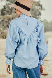 Designed in the 'Connect The Dots' 100% cotton fabric. An exquisite season favourite featuring a high neck and long sleeves with an elasticated wrist. This stunning blue print with miniature dots is the perfect colour to make every outfit stand out with warmth.