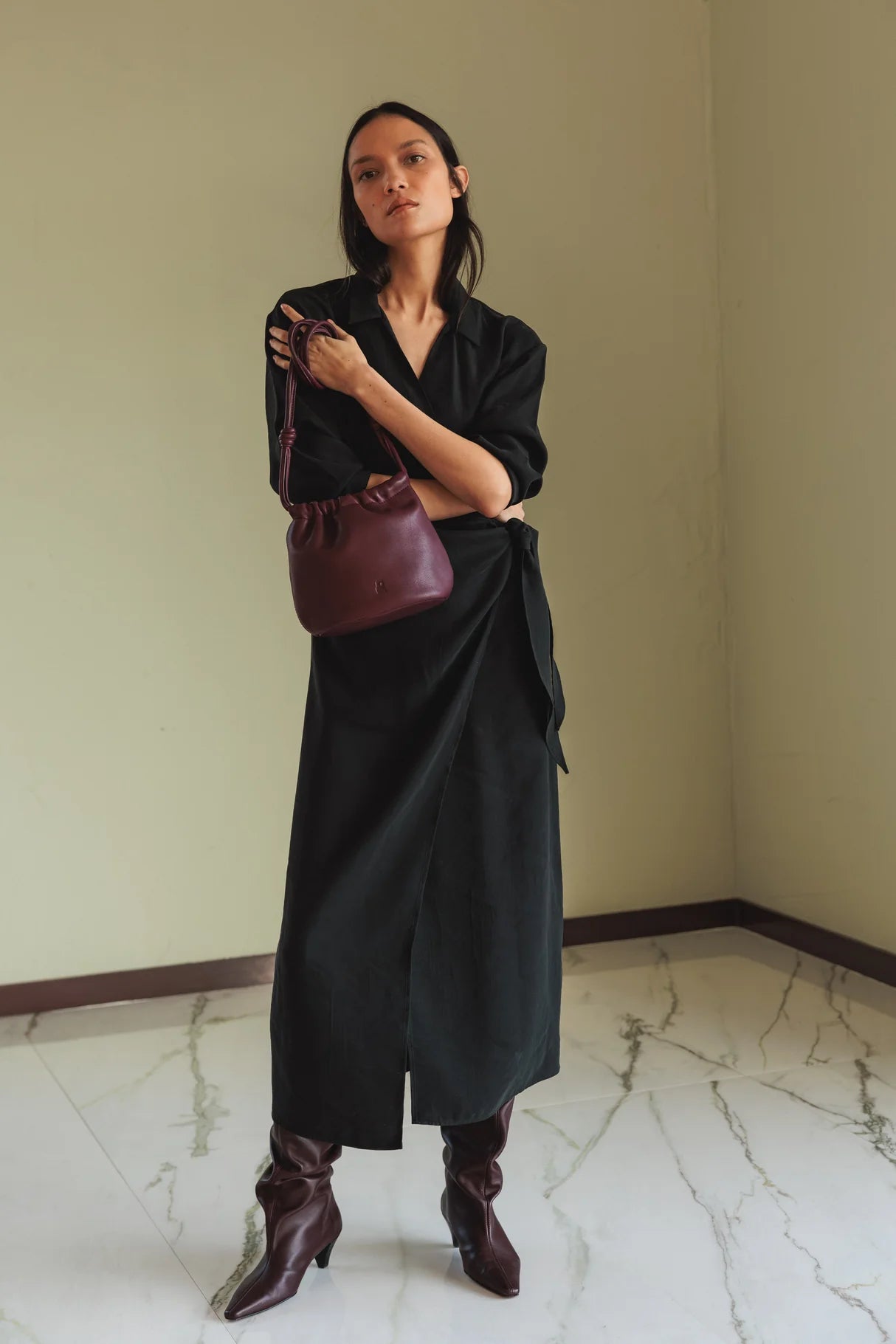 Indi & Cold Bolsos Gathered Bucket Leather Bag – Elevate your daily style with this stunning gathered bucket leather bag, expertly crafted for both everyday wear and special occasions.