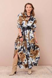 Natasha The Label Sabine Print Maxi Shirt Dress