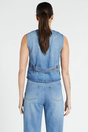 The faded light-blue wash and tailored details adorning this classic denim vest create an authentic vintage look reminiscent of '70s styles. It's cut from sturdy cotton for a slim fit and has an adjustable buckle to cinch the waist.